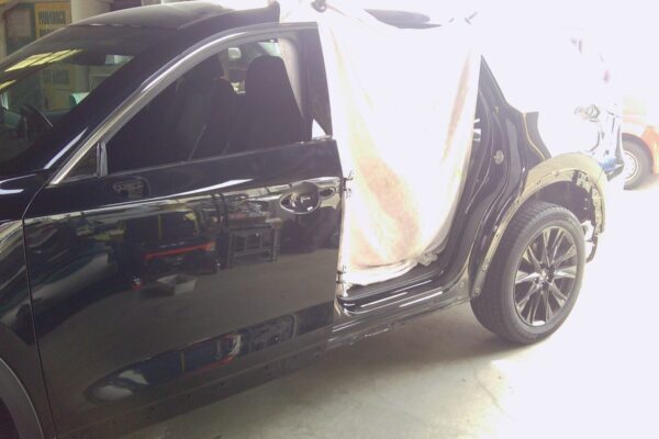 マツダ CX-8|左リアドア交換&サイドステップ板金!フロントドアへの「ちらし塗装」で色差なしの仕上がり