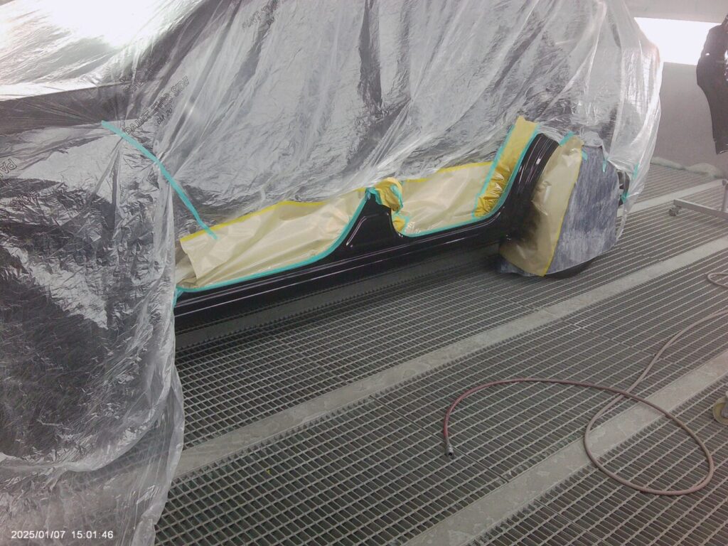 一方、左サイドステップ(ロッカーパネル)のへこみ修理は、当社の熟練の職人が確かな技術で鈑金を行い、交換せずに元の美しい形状へと復元しました。この「交換」と「板金塗装」の使い分けこそが、車 修理の費用を抑え、お客様にとってベストなプランをご提案する南郷鈑金のこだわりです。