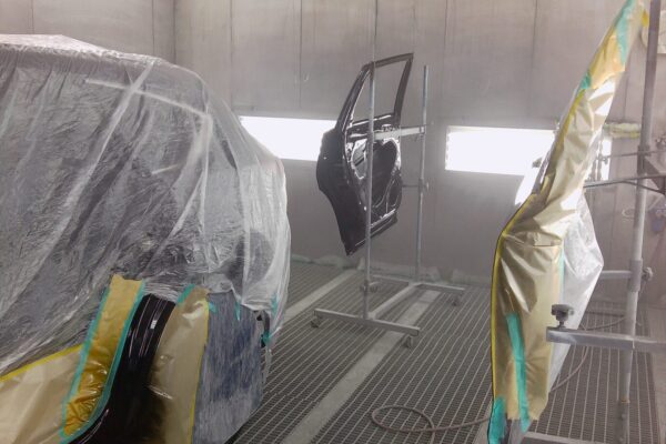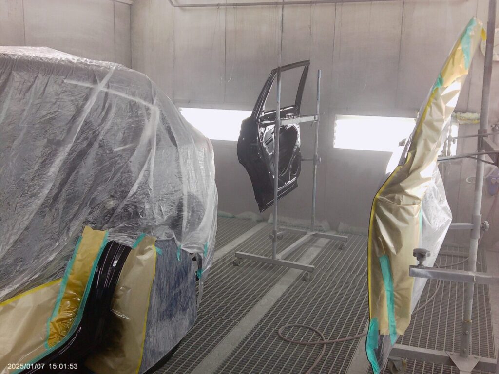 今回の損傷は、左リアドアと左サイドステップに集中していました。 特に左リアドアは損傷が大きく、交換が最も確実で安全性を確保できると判断し、新品部品への交換後、丁寧に塗装作業を行いました。