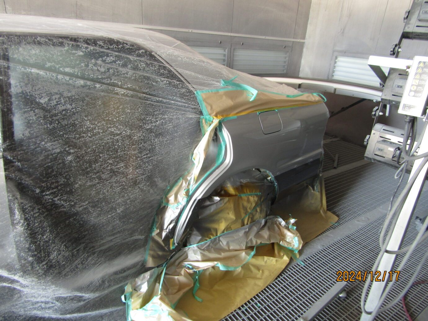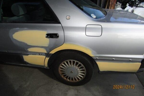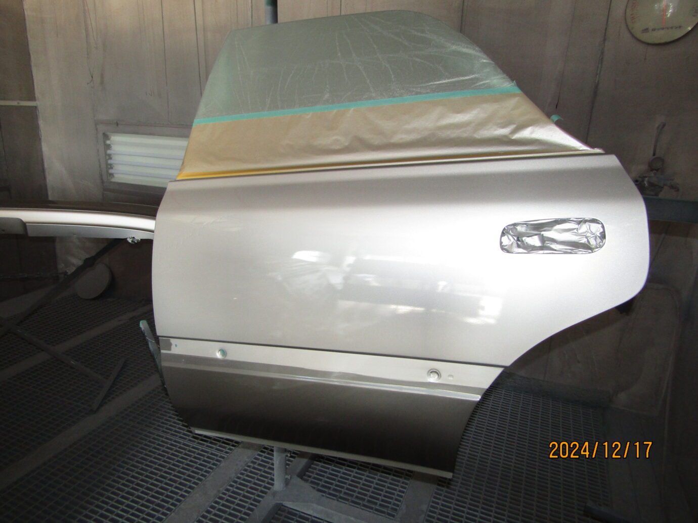 部品欠品のため、フェンダーやドア、バンパーなど全て鈑金塗装で対応。2トーンカラーも美しく再現し、違和感のない仕上がりを実現しました。