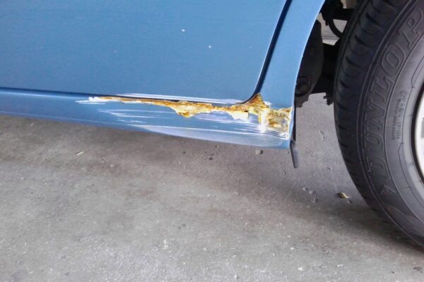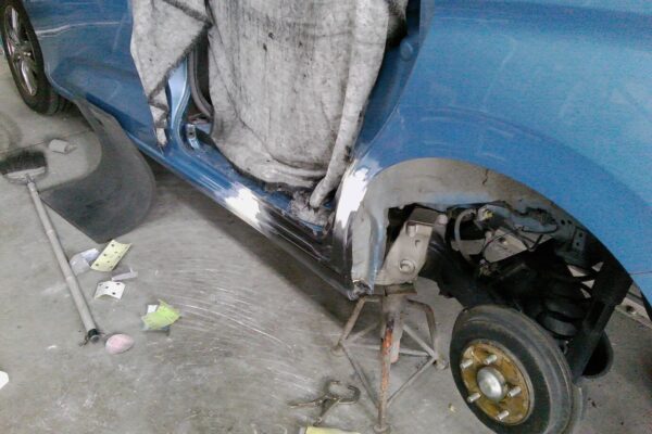 まず左側面の損傷状態を詳細にチェックし、最適な修理方法を決定。部品交換が必要か、鈑金で対応できるかを判断します。
