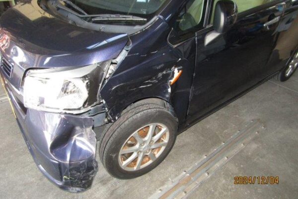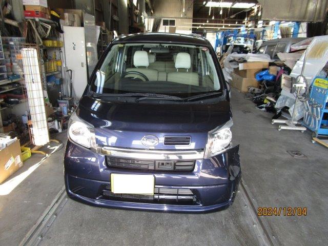 宝塚市の南郷鈑金では、軽自動車のキズ修理から事故による大きな損傷まで幅広く対応しています。今回はダイハツ・ムーヴのフロントまわりの事故修理をご依頼いただきました。
