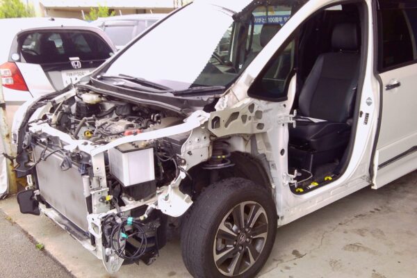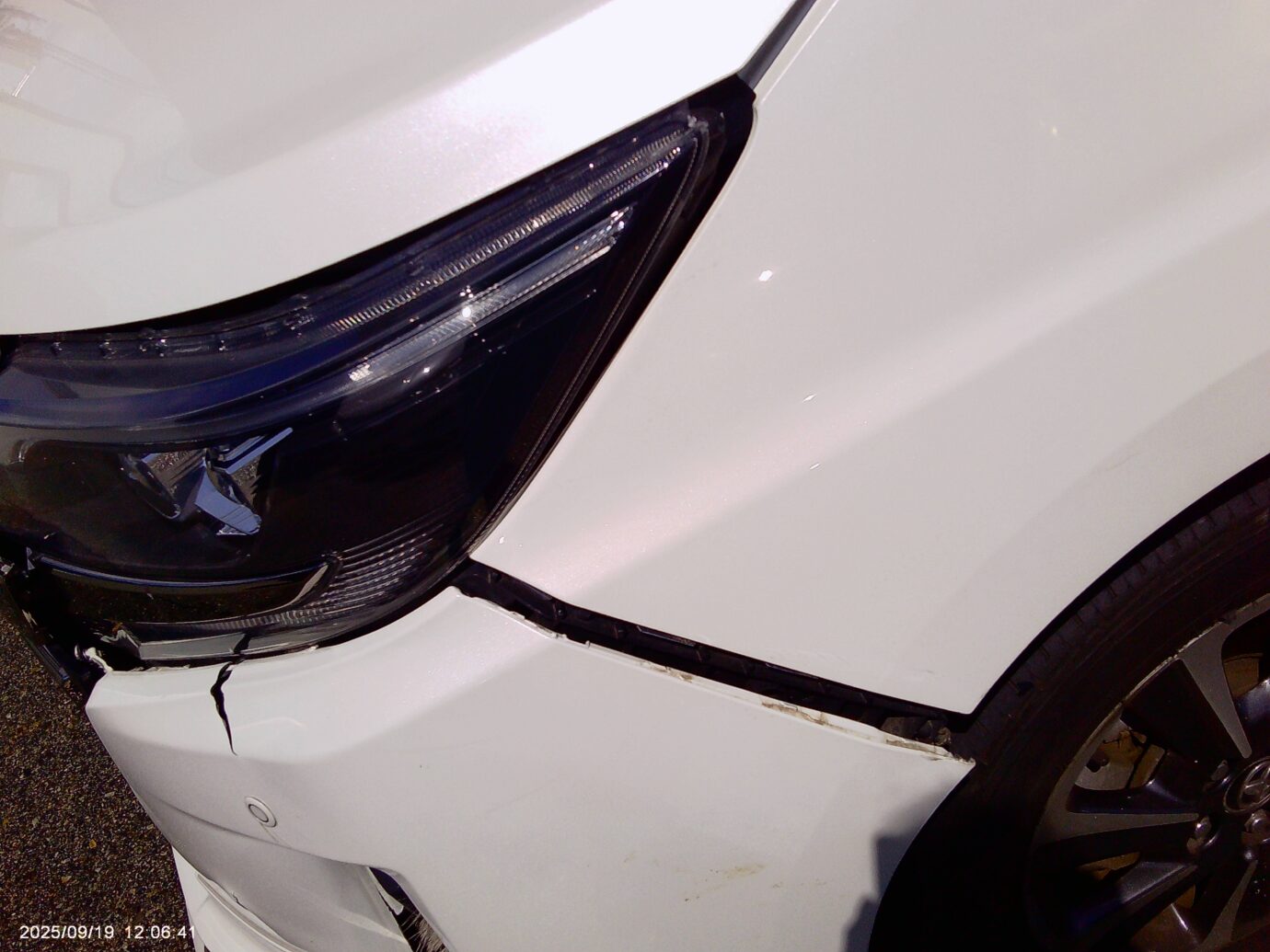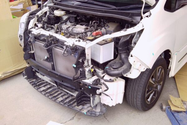 バンパーやフェンダーの歪み、塗装の割れ具合、ヘッドライトの固定部分まで細かく確認しました。